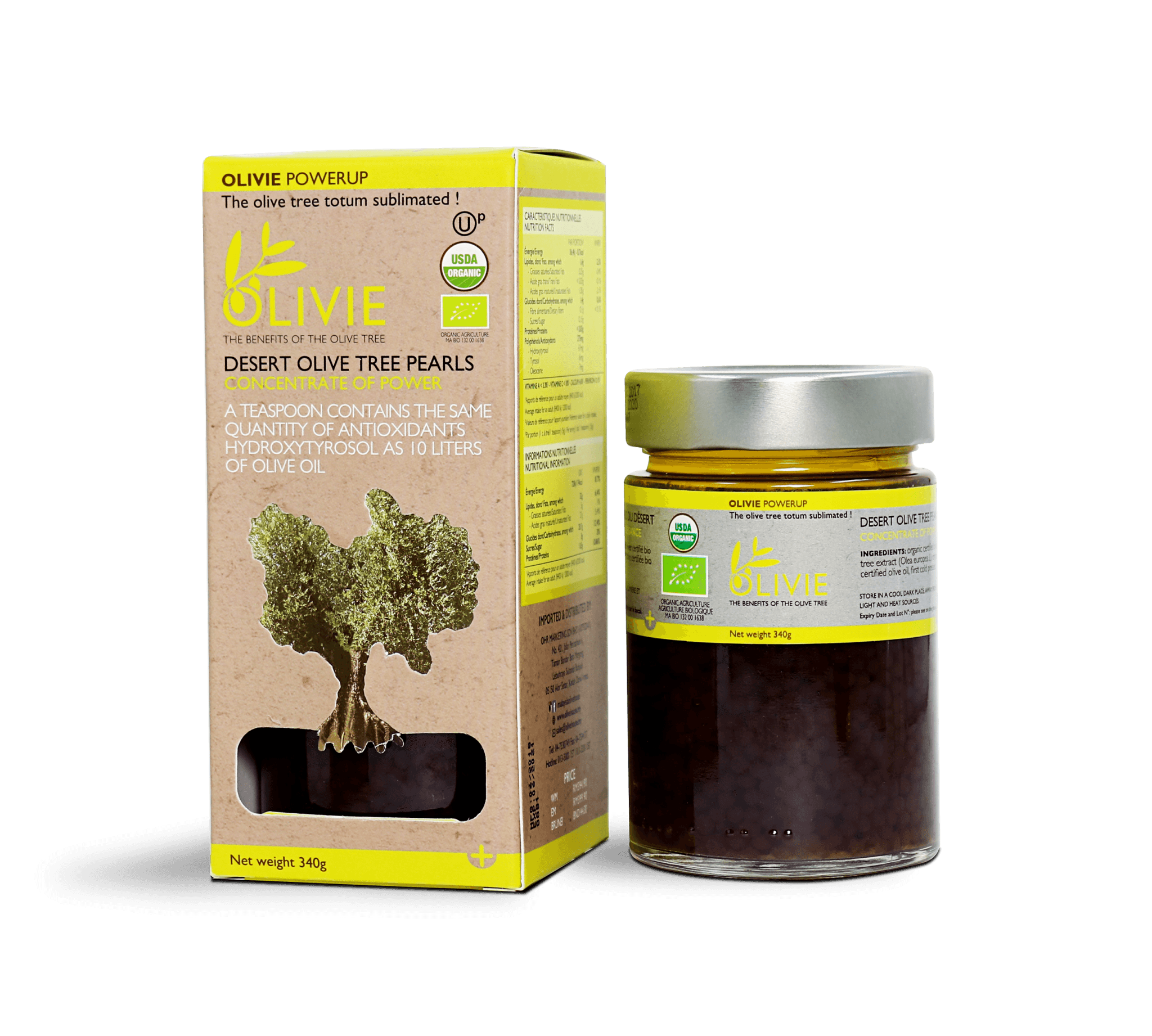 Berbentuk ‘Pearl/Caviar’ 100% semulajadi ekstrak dari dahan, daun & buah zaitun muda yang direndam dalam minyak zaitun extra virgin.