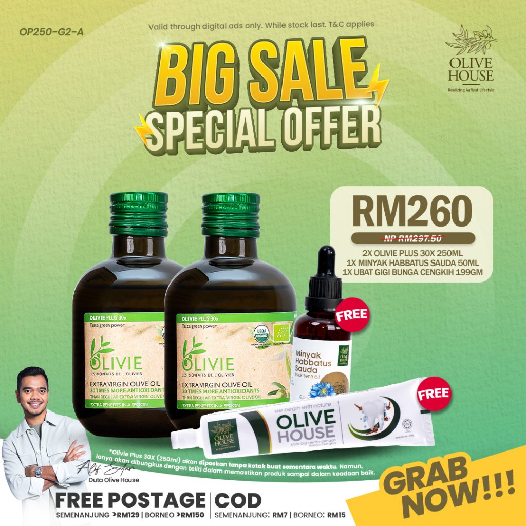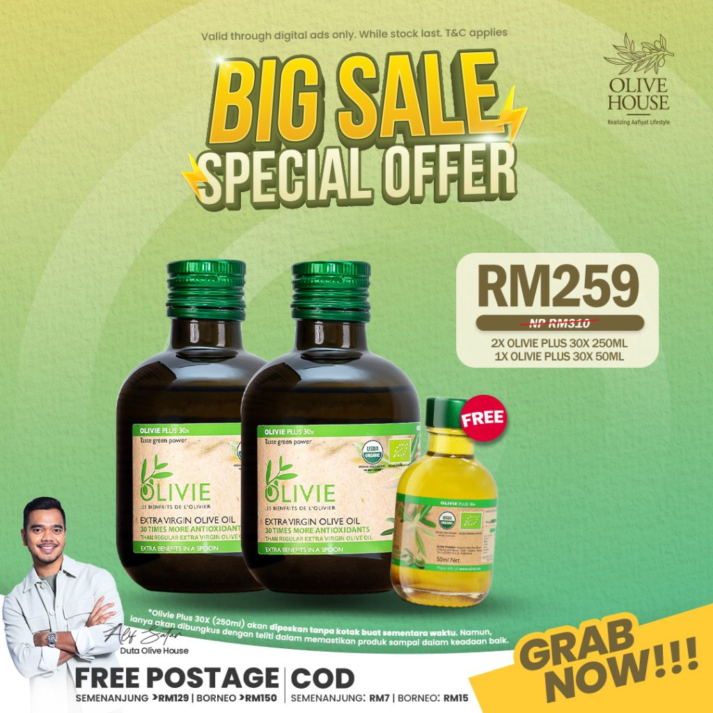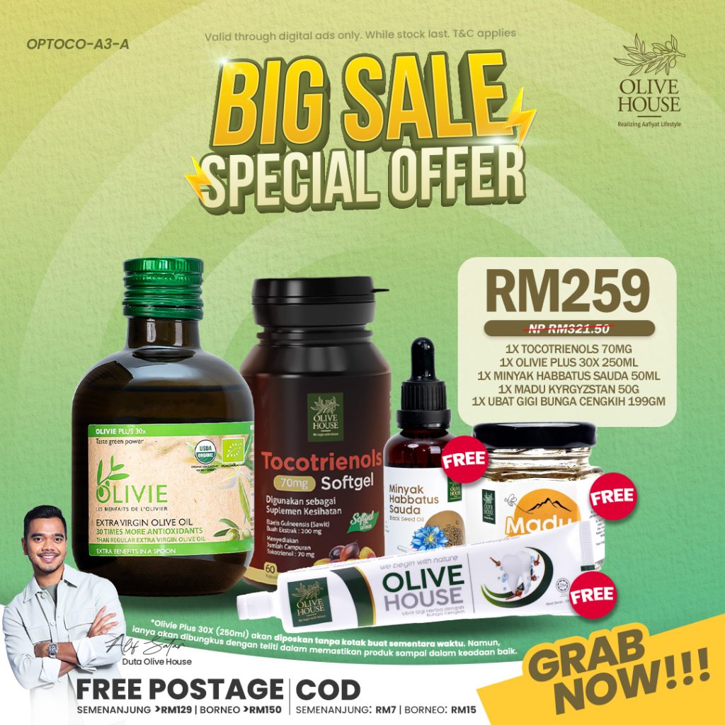 Nak kesan positif macam mereka yang ada masalah kesihatan sama macam anda? Mula Amalkan Minyak Zaitun Olivie Plus 30X & Vitamin Tocotrienols